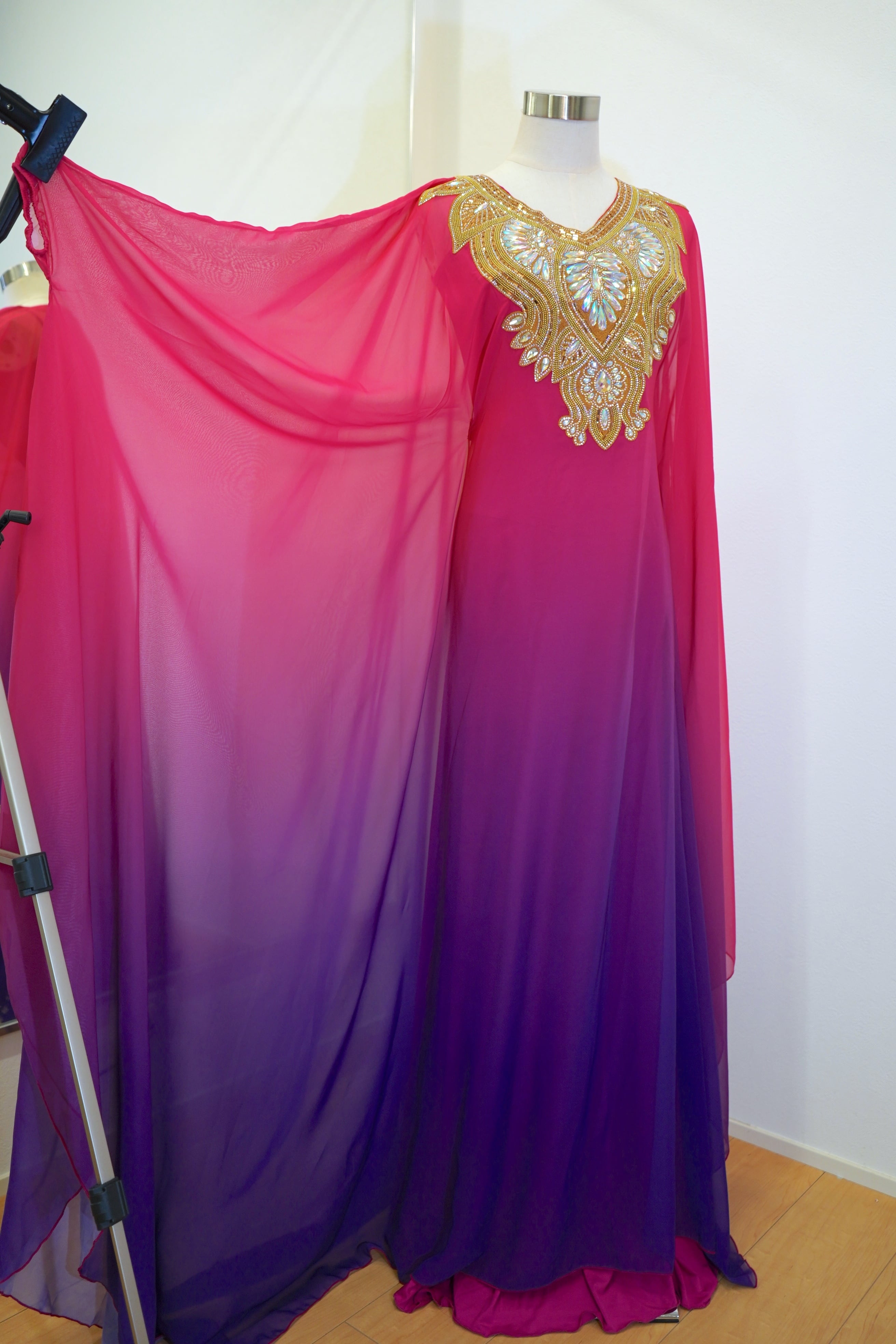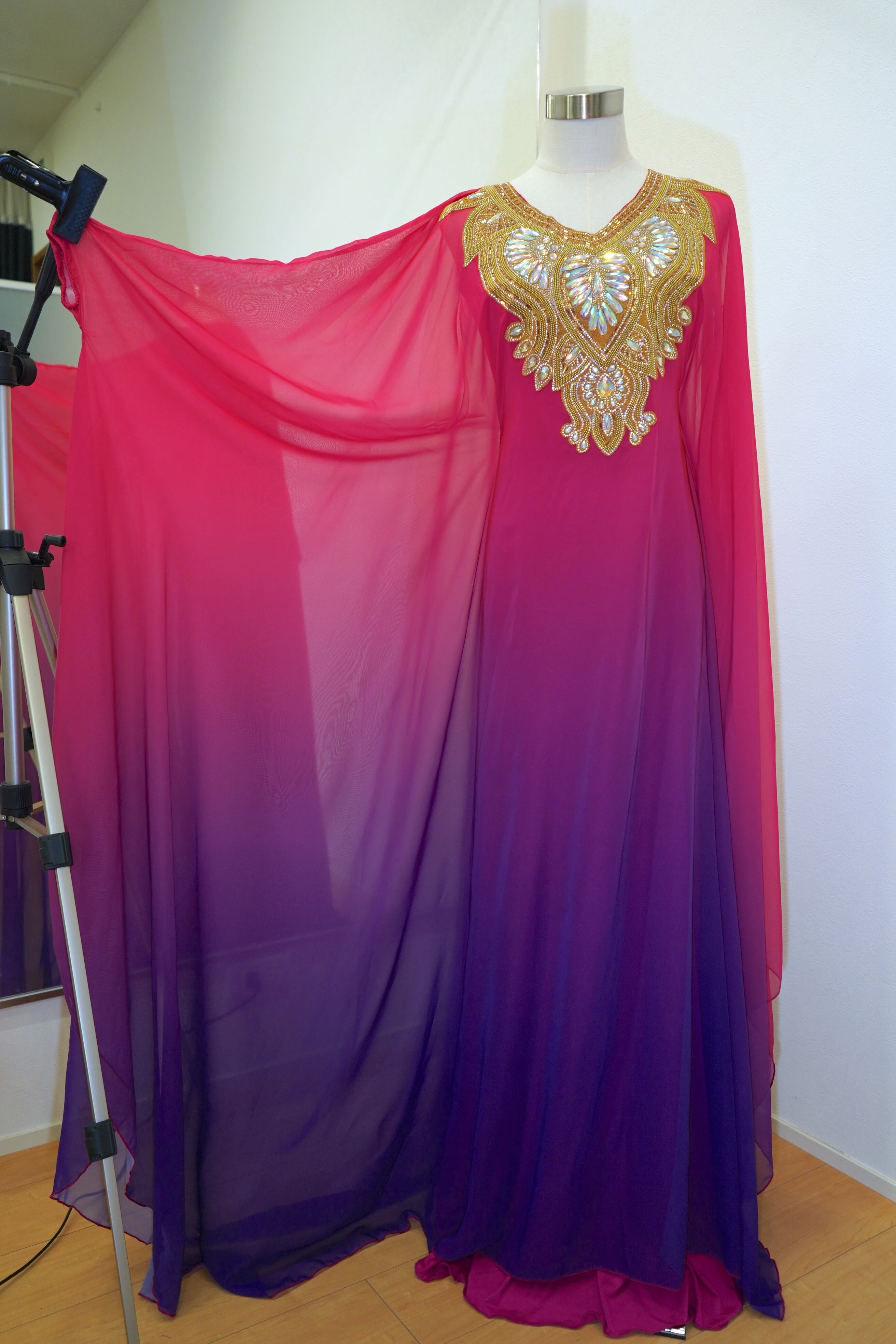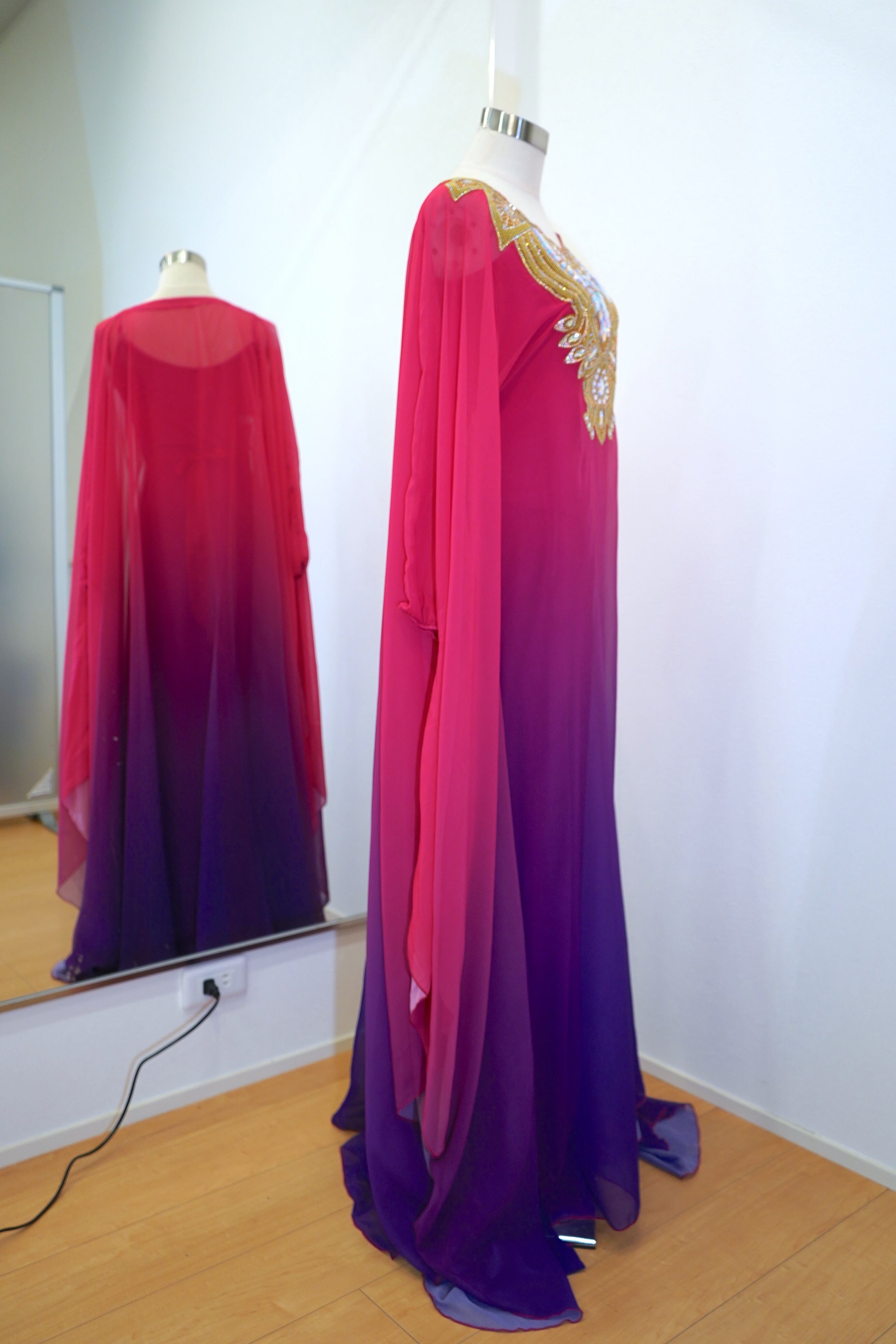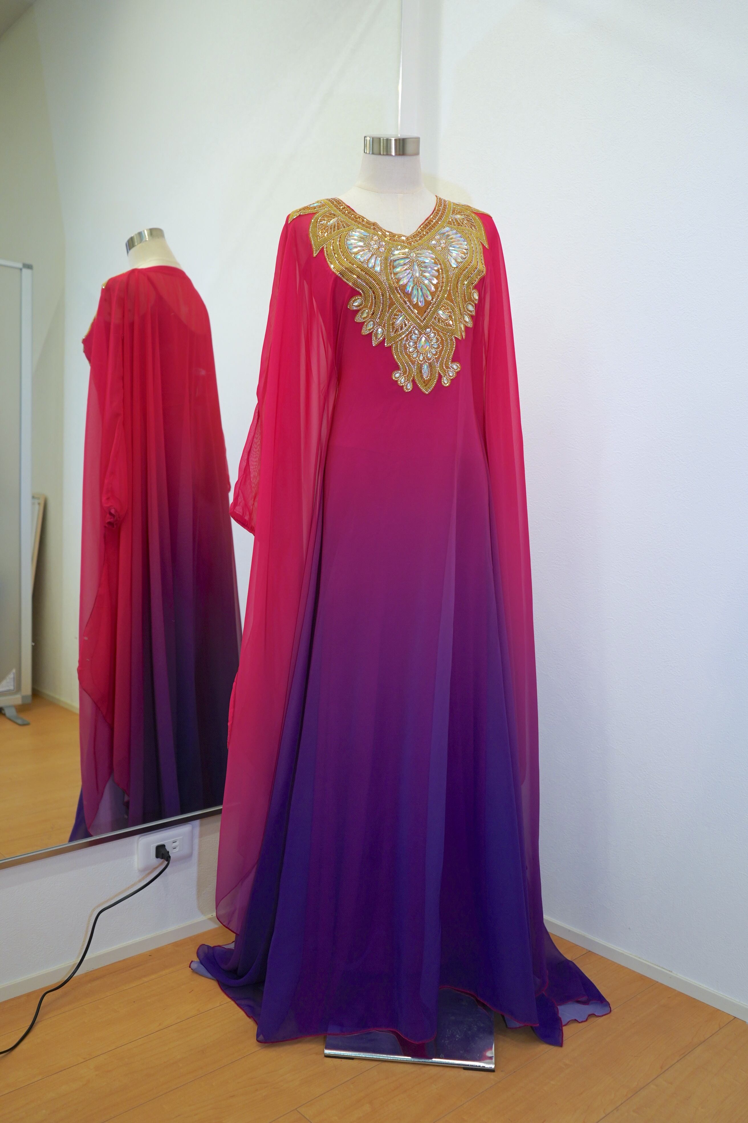 【即日発送】グラデーションハリージドレス インナーキャミワンピースセット 25-1030