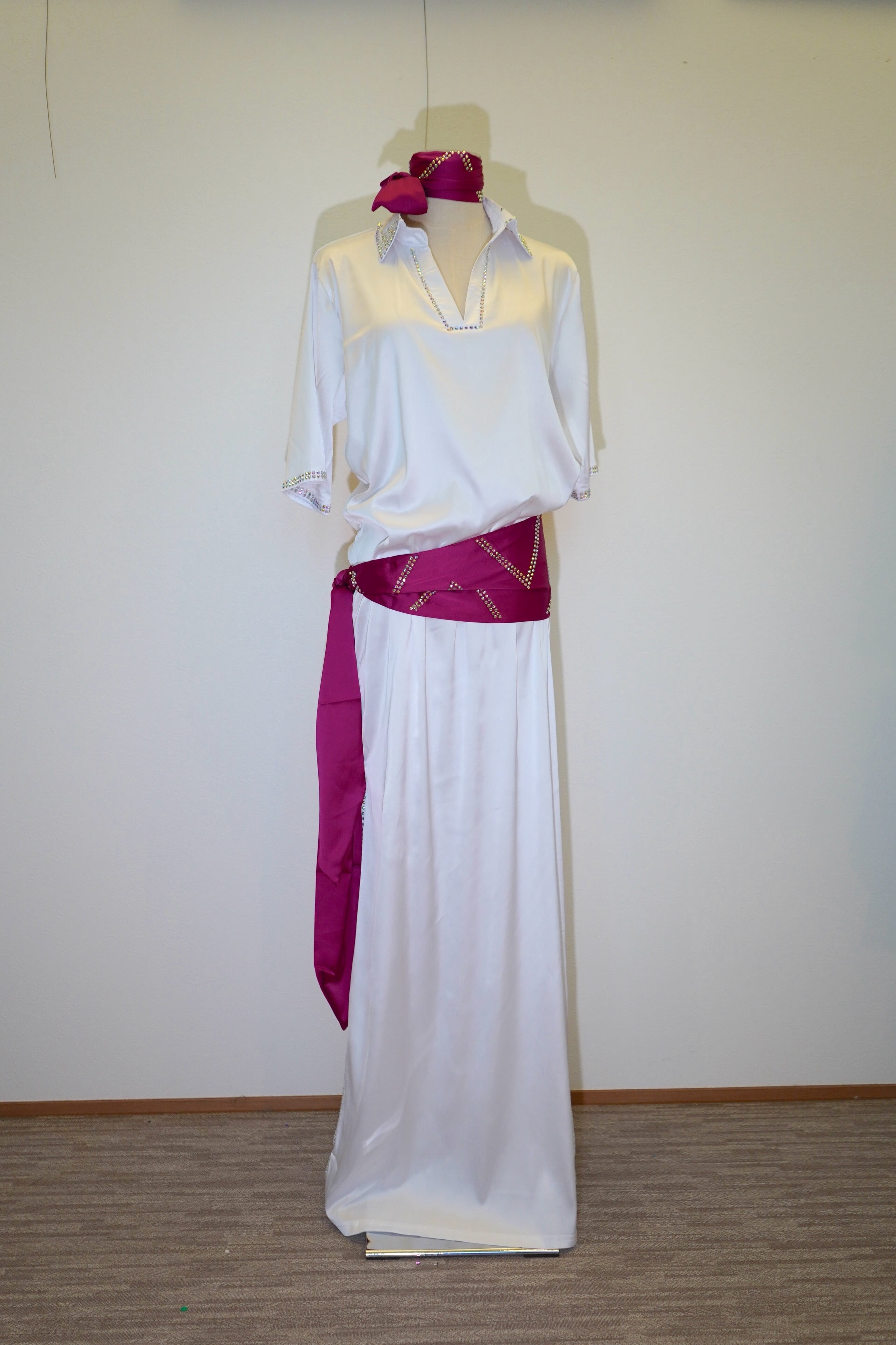 ホワイトバラディドレス、ヒップスカーフ、ヘットバンド、インナーパンツ