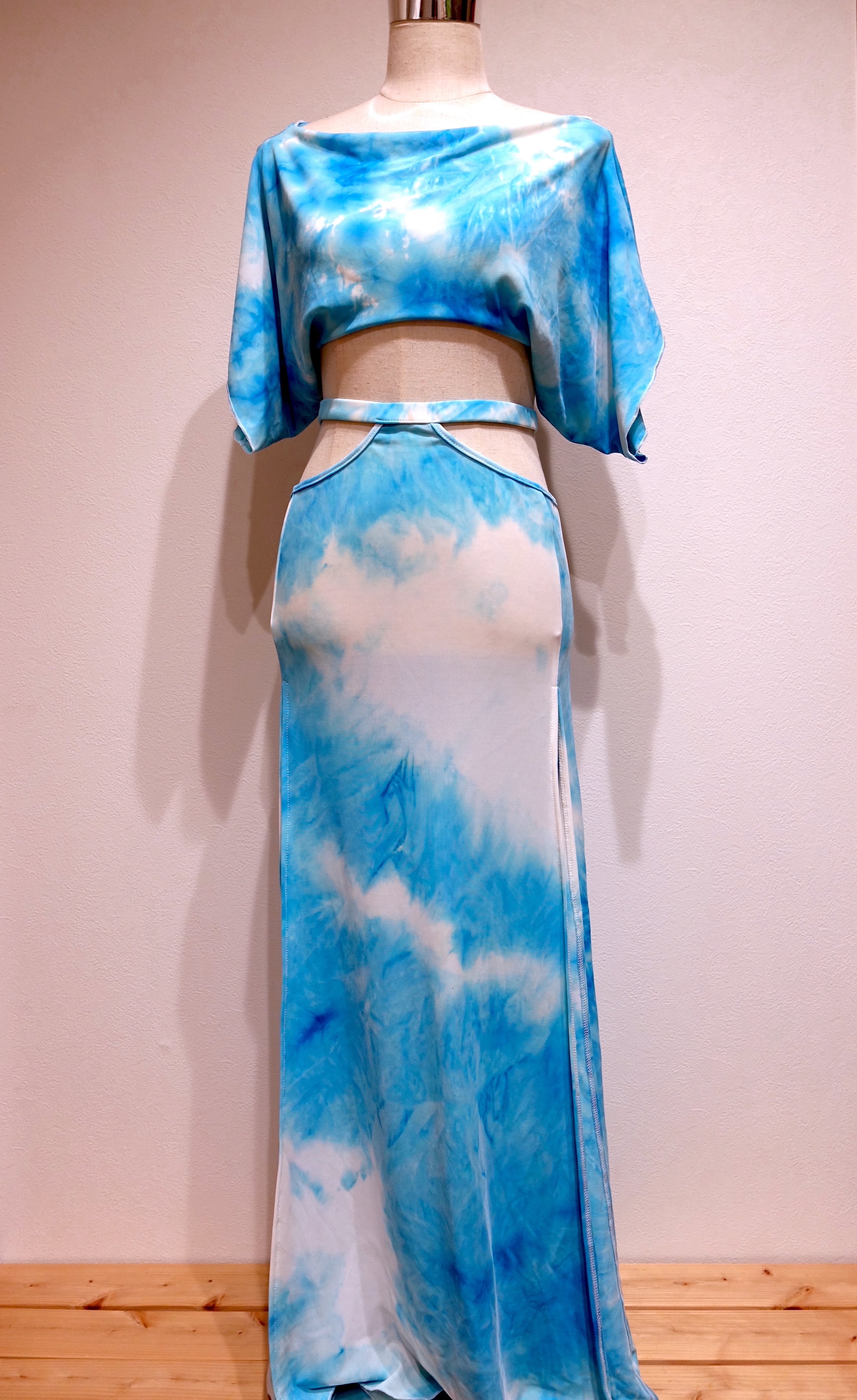 トップス丈37cm 、バスト78〜105cm、袖丈30cm、スカート丈100cm、ウエスト70〜98cm、身長164〜170cm、体重55〜65kg