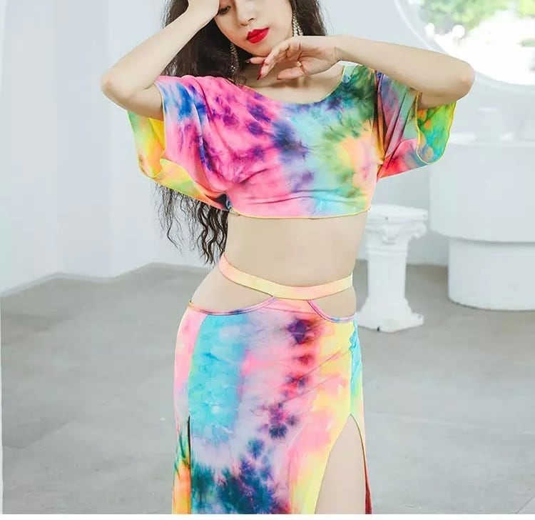 【即日発送】ダイダイ柄 ベリーダンスレッスンウエア セットアップ122