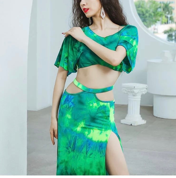 ダイダイ柄 ベリーダンスレッスンウエア セットアップ ハイウェストタイプ 526